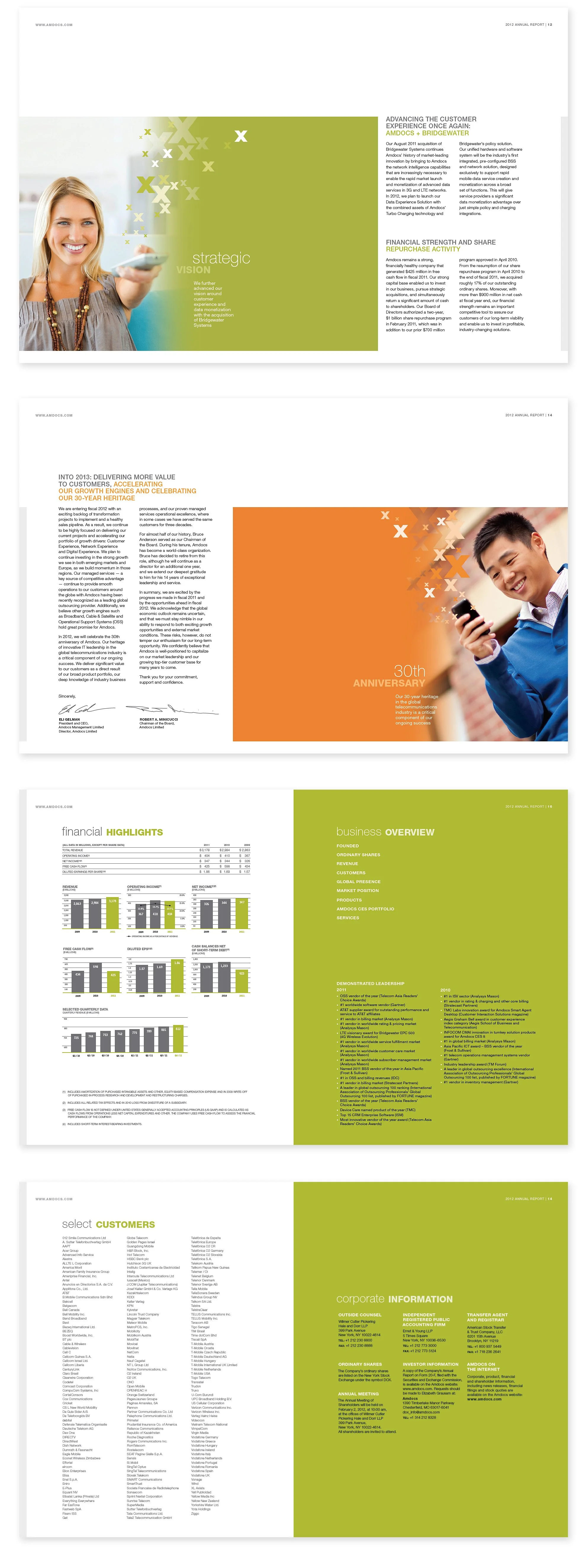 Amdocs needed an annual report designed to reflect the innovative, strategic, award-winning technology they’re known for. While staying in line with their brand, this annual report features a clean and modern layout with strong typography, large photos, and bold colors that grab attention to showcase their progress in the industry.